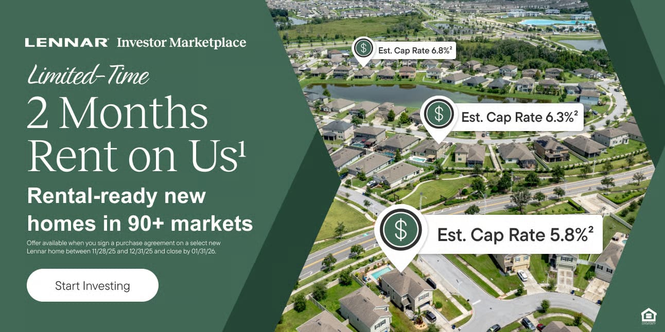 Two months of free rent + extra time to find the right tenant can make a big difference in a new SFR investment. That’s what’s available right now, exclusively for Zuber members from Lennar Investor Marketplace.